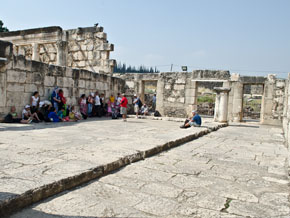 The ruins of Capernaum is a well attended place for visitors. The picture is taken inside what is left from a Synagogue from 400-century, most likely built on the same place where the Synagogue where located during Jesus time.